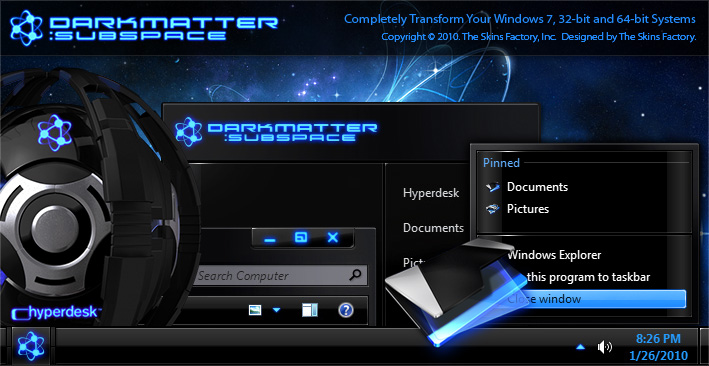 Использование собственных двигателей шкуры Microsoft, Hyperdesk использует "родной" и стабильно, чтобы тема Windows. Потому что магия Hyperdesk происходит полностью в память, файлы системы не прикасался или заменить. И так же, как это имеет одну кнопку, чтобы сделать волшебство произошло, одним щелчком мыши вернет вас на рабочем столе по умолчанию Windows. Каждая установка Hyperdesk содержит пользовательский hypersuite. Эти произведения искусства были тщательно, ручной работы на самых талантливых в мире коммерческий художников интерфейса на заводе Скины, с тем же вниманием к деталям и безупречное исполнение мы стали известны во всей отрасли. Год: 2010 Язык: Многоязычный Лекарство: Не требуется